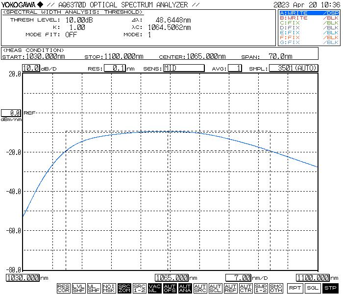 De brede-band lichtbron is gebaseerd op Ytterbium gedoteerde vezels en krachtige pomplaser. ASE-spectrum bedekt 1030-1060 Nm, met een hoog uitgangsvermogen en een goede vlakheid. Het kan worden gebruikt in vezelapparaattest, FBG -roosterschrijfsysteem, enz.