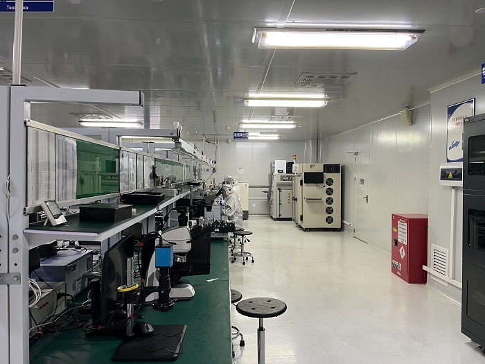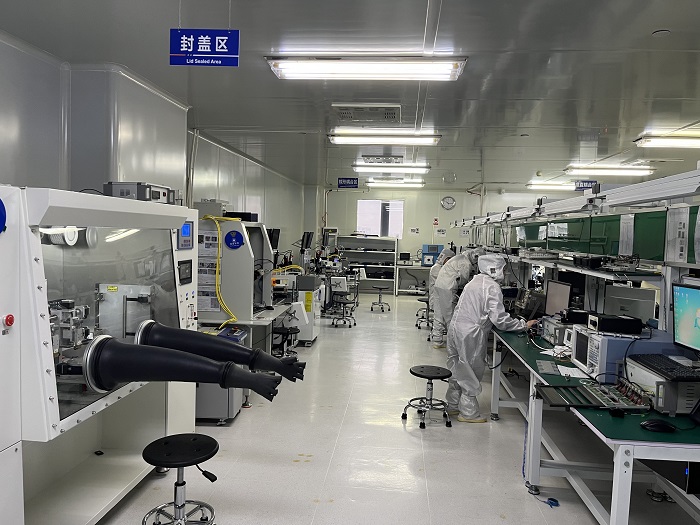 vierkante meter. We kunnen 10K stuks coaxiale laserdiode of InGaAs fotodiode per maand produceren, 2000 stuks vlinderpakket pomplaserdiode, DFB laserdiode, superluminescente diodes per maand, 100 stuks EDFA en ASE-bron per maand.