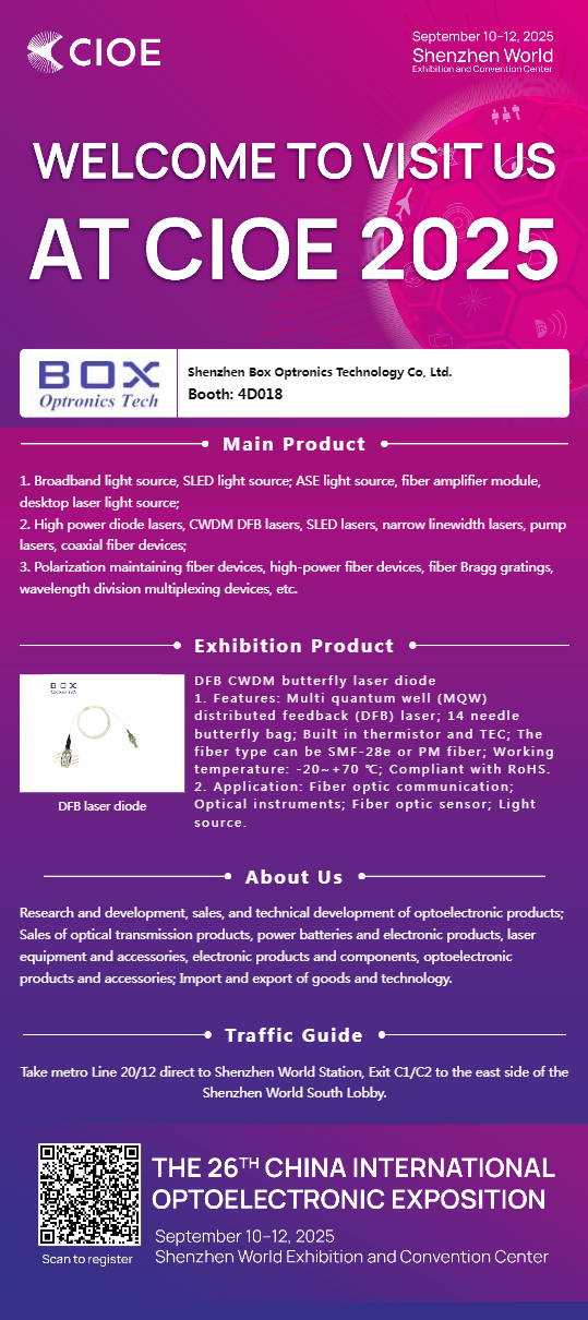 Copyright @ 2020 Shenzhen Box Optronics Technology Co., Ltd. - China glasvezeloptische modules, fabrikanten van vezels gekoppelde lasers, leveranciers van lasercomponenten Alle rechten voorbehouden.