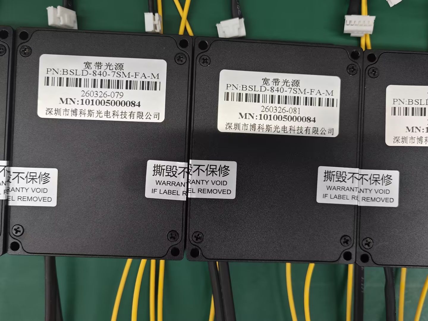 Onlangs heeft Shenzhen Box Optronics Technology Co., Ltd. de productie en het laatste testen van een batch voltooidBSLD-840-7SM-FA-M breedbandlichtbronmodules, die soepel het verzendproces zijn ingegaan om stabiele en betrouwbare lichtbronoplossingen te bieden voor klantentoepassingen op het gebied van optische communicatie, detectie en andere gebieden.